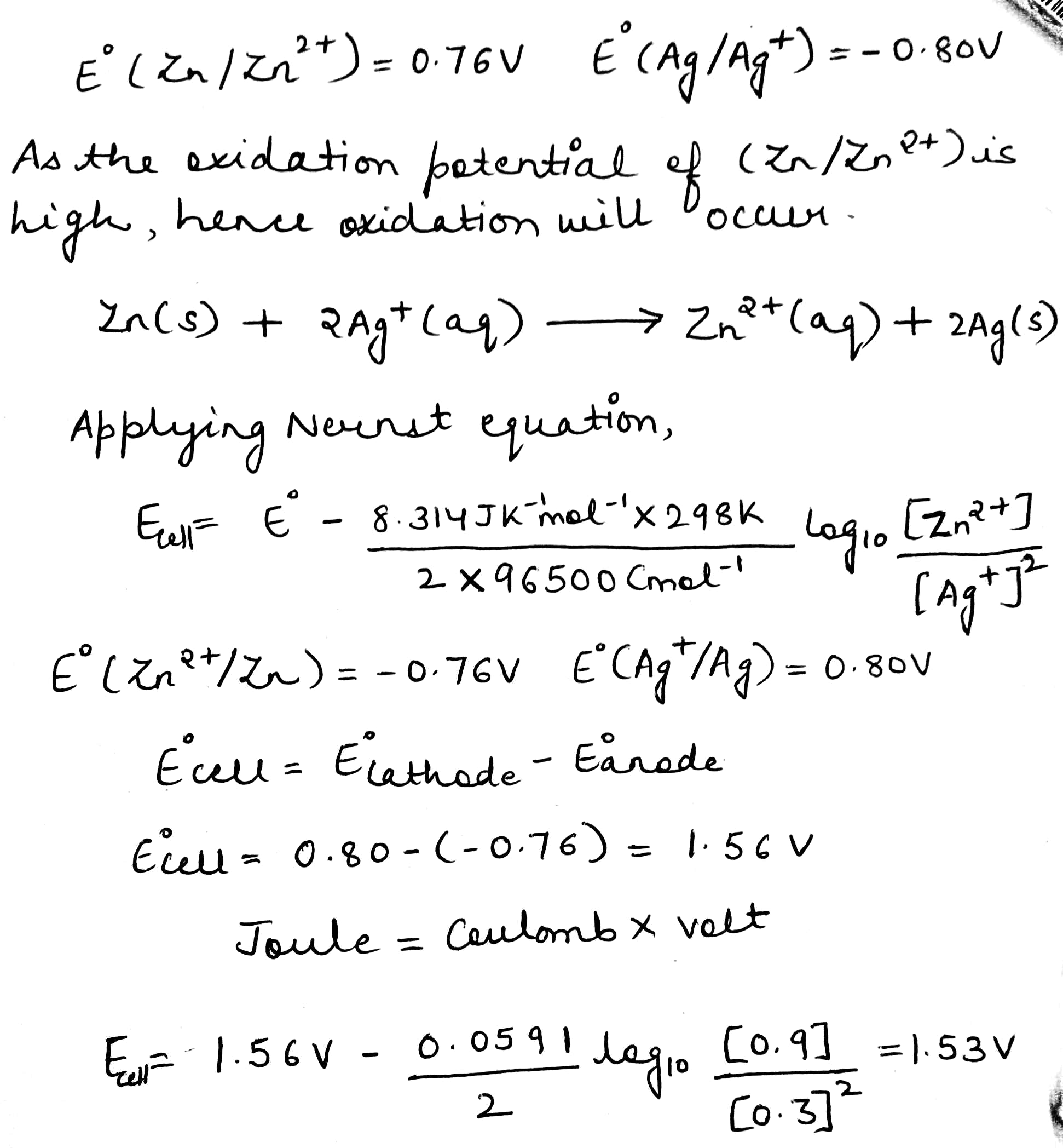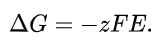 universal ideal gas constant. The cell potential E associated with the electrochemical reaction is defined as the decrease in Gibbs free energy per coulomb of charge transferred, which leads to the relationship