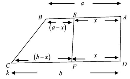 Area formula: (1/2) × EF × ((a - x) + (b - x)) = EF × x