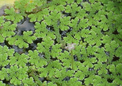Azolla is a type of aquatic fern that belongs to the family Azollaceae. It is a small, free-floating, fast-growing water fern that forms a symbiotic relationship with the nitrogen-fixing cyanobacterium Anabaena azollae.