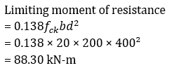 Calculate the limiting moment of resistance in accordance with the limit state design of singly reinforced rectangular beam whose width is 200 mm and effective depth is 400 mm. Consider that the grade of steel is Fe415 and that of concrete is M20.