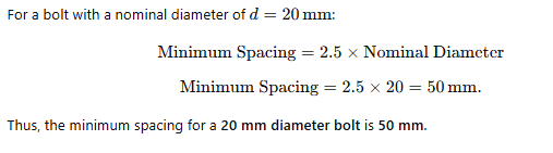 Calculate the minimum spacing of 20 mm diameter bolt as per IS 800-2007.