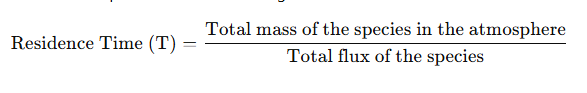 The residence time of a species is calculated using the formula: