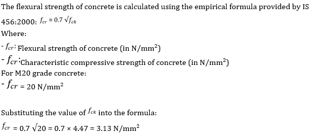 Calculate the value of Flexural strength of M20 grade concrete.