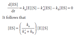 We can obtain the concentration of the enzyme–substrate complex by invoking the steady-state approximation and writing