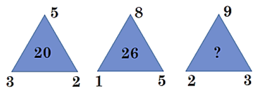 Similarly for the next triangle we have 8+5+1 =14 ,8×1 ×5=40,40-14=26