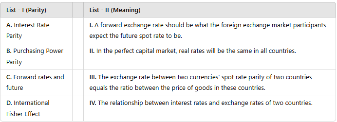 - The correct match is II because IFE states that real interest rates remain equal in a perfect capital market.