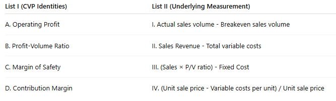 Here, the Profit-Volume (P/V) ratio represents the contribution margin ratio. So, Operating Profit corresponds to option III.