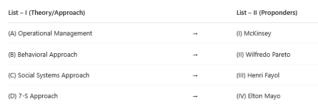 Elton Mayo’s Hawthorne Studies revolutionized management thinking by showing the importance of social factors, worker satisfaction, and interpersonal relationships—key elements of the behavioral approach.(C) Social Systems Approach → (II) Wilfredo Pareto
