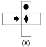 Choose the dice from the given options that is similar to the dice formed from the given sheet of paper(X).