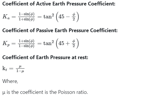 Coefficient of earth pressure at rest is given by:(μ - Poisson's Ratio)
