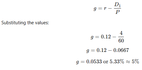 To find the dividend growth rate (g), we use the Gordon Growth Model (Dividend Discount Model - DDM):