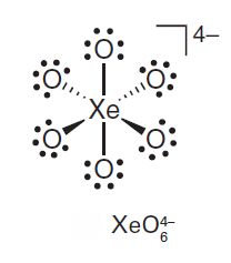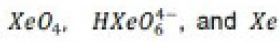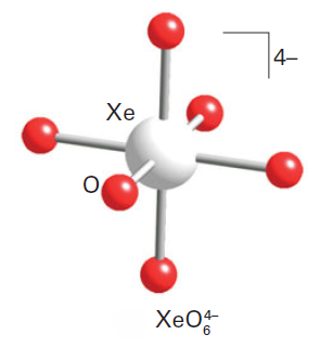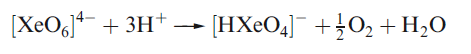 Aqueous [XeO6]4- is formed when O3 is passed through a dilute solution of XeO3 in alkali. Insoluble salts such as Na4XeO6.8H2O and Ba2XeO6 may be precipitated, but perxenic acid ‘H4XeO6’ (a weak acid in aqueous solution) has not been isolated. The perxenate ion is a powerful oxidant and is rapidly reduced in aqueous acid. Oxidations such as Mn (II) to [MnO4]- occur instantly in acidic media at 298 K.