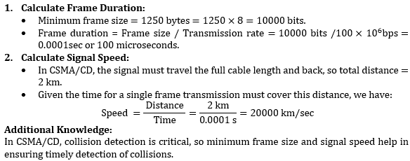 Consider a CSMA/CD network that transmits data at the rate of 100 Mbps over a 1 Kilometre cable with no repeater. If the minimum frame size required f