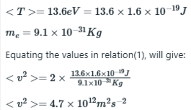 The expectation value of kinetic energy of electron is related to mass of electron and the velocity as:
