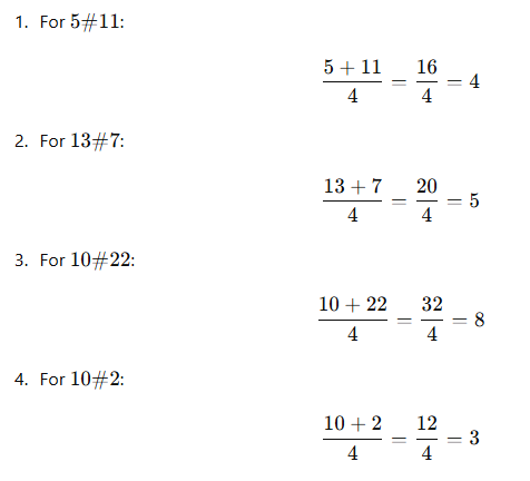 Consider that 5 # 11=4; 13 # 7 = 5;10 # 22=8. Then what is the value of 10#2 = ?