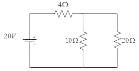 Consider the circuit shown below. Find the current flowing through 20 Ω resistor: