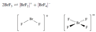 The self-ionization of BrF3 has been demonstrated by the isolation and characterization of salts containing the [BrF2]+and [BrF4]- ions, and by conductometric titrations of them. Using the solvent-based acid– base definitions, an acid in BrF3 is a species that produces [BrF2]+, and a base is one that gives [BrF4]-.