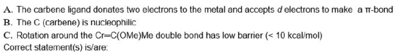 Resonance pair gives a bonding description for a Fischer-type carbene complex.