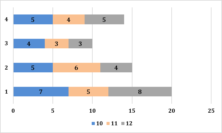 Consider the percentage of failed students in class 10, class 11 and class 12 in four different schools: 1, 2, 3 and 4 given in the bar graph.