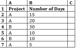 Sum the corresponding values in column B (B2:B7) where column A contains "A".