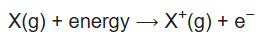 where X is any atom or molecule, X+ is the resultant ion when the original atom was stripped of a single electron, and e- is the removed electron. Roughly speaking, the closer the outermost electrons are to the nucleus of the atom, the higher the atom's ionization energy.