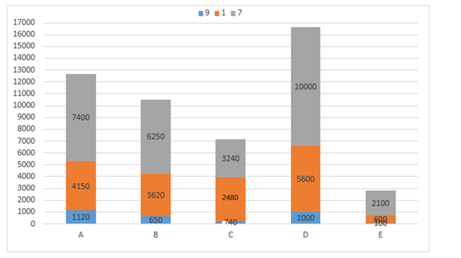 Percentage Increase = (Sales of size 9Sales of size 1−Sales of size 9)×100