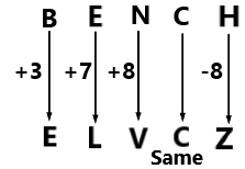 DEATH is related to GLITZ in a certain way based on the English alphabetical order. Inthe same way, GRAVE is related to JYIVW. To which of the given options is BENCHrelated, following the same logic?