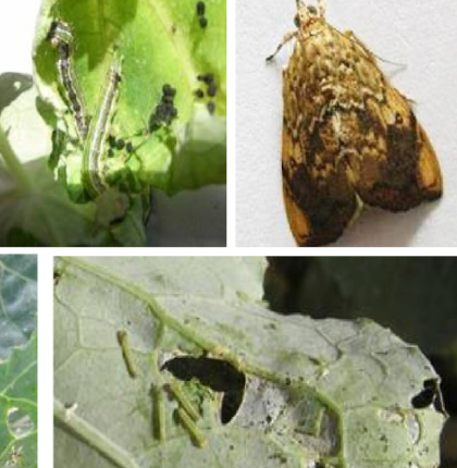 The Diamondback moth (Plutella xylostella) is a serious pest of cabbage and other cruciferous crops like cauliflower, broccoli, and mustard.