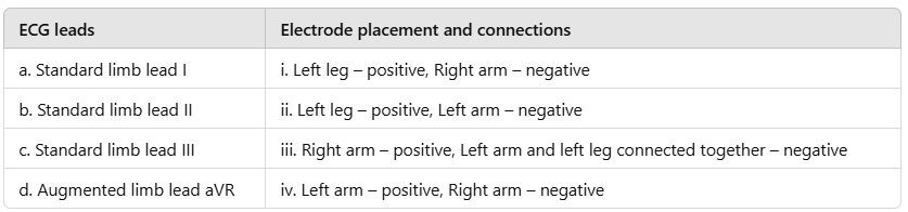 The standard limb leads (I, II, III) measure the electrical potentials between the limbs in different combinations.