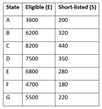 Number of Candidates found Eligible and the Number of Candidates Short-listed for Interviews for a recent Recruitment Process for Six Posts from Different States.