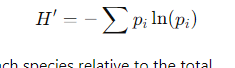 where pi is the proportion of each species relative to the total.