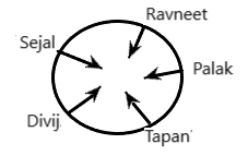 A, B, C, D, E, F, G and H are sitting around a circle at an equal distance facing the centre of the circle.