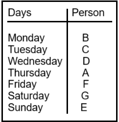 P, Q, R, S, T, U and V have an exam on different days of the week, starting on Monday and ending on Sunday. S has an exam on Tuesday. Exactly 3 people have an exam between S and V. T has an exam immediately before P and U has an exam immediately after P. Only 1 person has an exam between T and R. Who has an exam on Monday?