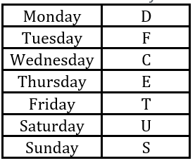 Given -Each of C, D, E, F, S, T and U has an exam on a different day of a week starting from Monday and ending on Sunday of the same week.
