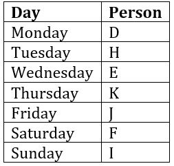 Each of D, E, F, H, I, J and K has an exam on a different day of a week starting from Monday and ending on Sunday of the same week. K has the exam on Thursday. H has the exam on one of the days after D and on one of the days before E. F has the exam on one of the days after J but on one of the days before I. J has the exam on one of the days after K. How many people have the exam between F and H?