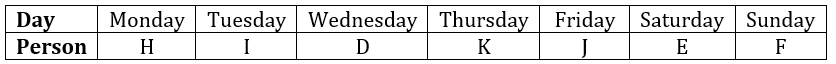 Tanya wears T-shirts of seven different colours Red, Green, Yellow, Blue, Purple, Orange and Magenta on seven different days of the week starting from Monday. She wears green T-shirt on Thursday. She does not wear yellow or purple colour T-shirts on Friday. She wears red colour T-shirt after the green colour T-shirt. She wears only purple colour T-shirt on the day between the days on which she wears Blue and Magenta colour T-shirts. She wears orange colour T-shirt after yellow colour T-shirt.