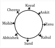 · Eight athletes Sunil, Abhishek, Mohit, Cheenu, Rahul, Tanu, Koyal and Ankit are sitting around a circular table facing opposite to the centre