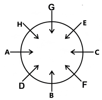 Eight friends A, B, C, D, E, F, G and H are sitting around a circle, facing at the centre. 'C' is between 'E' and 'F'. 'G' is the neighbour of 'E'. 'F' is on the immediate right of 'B'. 'H' is on the immediate left of 'A'. 'H' is not the neighbour of 'D' or 'E'.