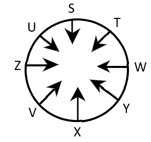 A, B, C, D, E, F, G and H are sitting around a circle at an equal distance facing the centre of the circle.