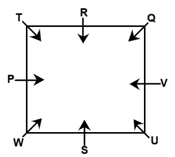 Eight students, P. Q. R, S. T, U, V and W, are sitting around a square table facing the centre of the table (but not necessarily in the same order). S