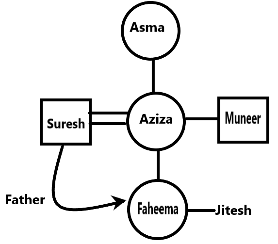 Suresh is Aziza's husband, and Aziza is Faheema's mother,