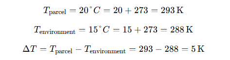 · ΔT = temperature difference (Tparcel −Tenvironment)