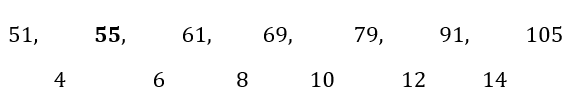 Find out the wrong number. 51, 52, 61, 69, 79, 91, 105