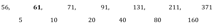 Find out the wrong number. 56, 60, 71, 91, 131, 211, 371