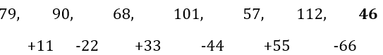 Find out the wrong number. 79, 90, 68, 101, 57, 112, 25
