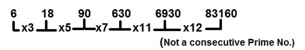 Hence the last multiplier 12 is not a consecutive prime hence number 83160 is incorrect