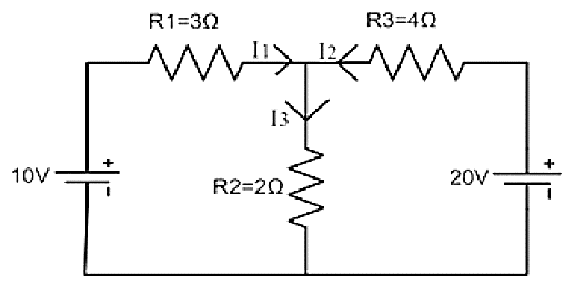 The equation becomes: 4I2+2I3=20