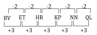 Logic - the first letter of each term increased by 3 and second letter of each term decreased by 2