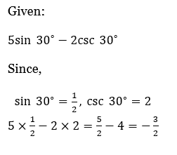 Find the value of 5 sin θ - 2 cosec θ, if θ = 30°.