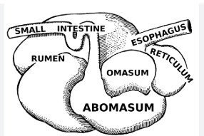 Abomasum – fourth compartment, also called the "true stomach," where acidic digestion occurs (similar to monogastric stomachs).